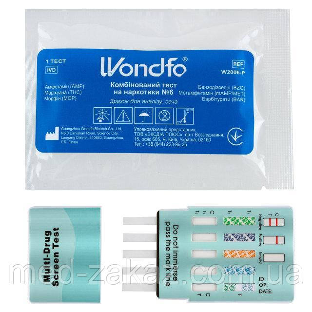 Експрес-тест для швидкого одночасного визначення шести видів наркотичних речовин та їх метаболітів у сечі людини: амфетаміну (AMP), метамфетаміну (МЕТ), марихуани (ТНС), морфіну (МОР), бензодіазепіну (BZO) та барбітуратів (BAR).